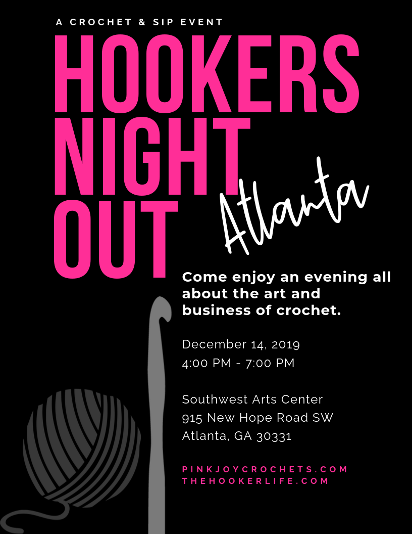 Come hang out with your fellow crocheters at Hookers Night Out, A Crochet and Sip Event.