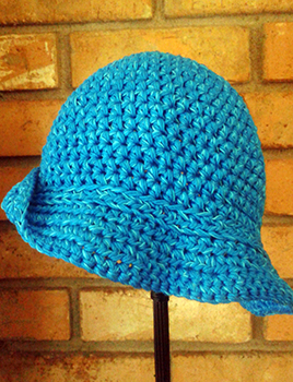 Chic style in this adult sized hat. Made with turquoise cotton yarn and thread.